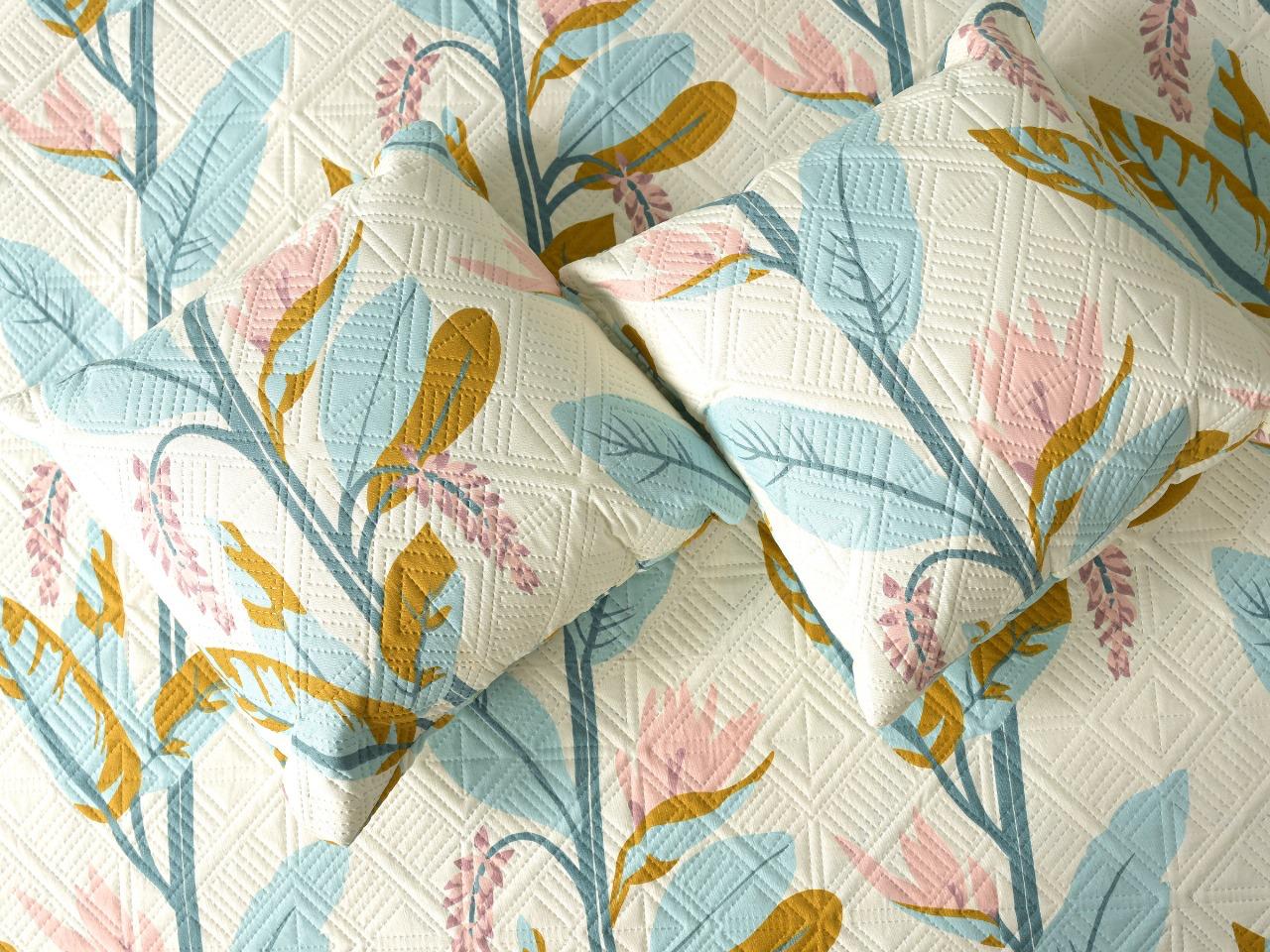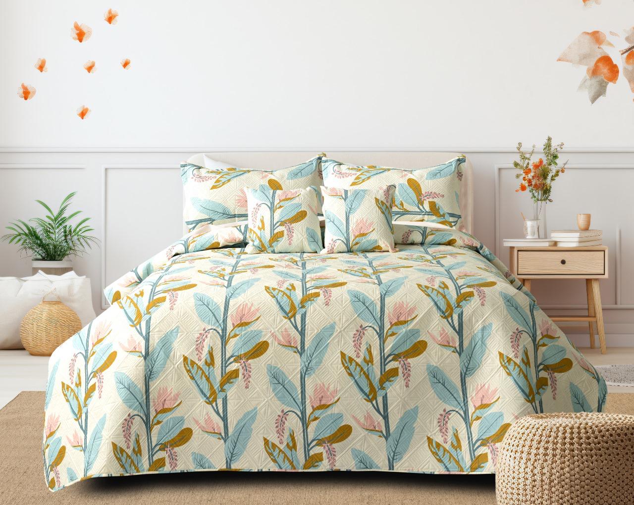 1 Printed Bedcover, 2 Matching Pillow Covers, and 2 Filled Cushions – for a beautifully coordinated and luxurious bedroom look.