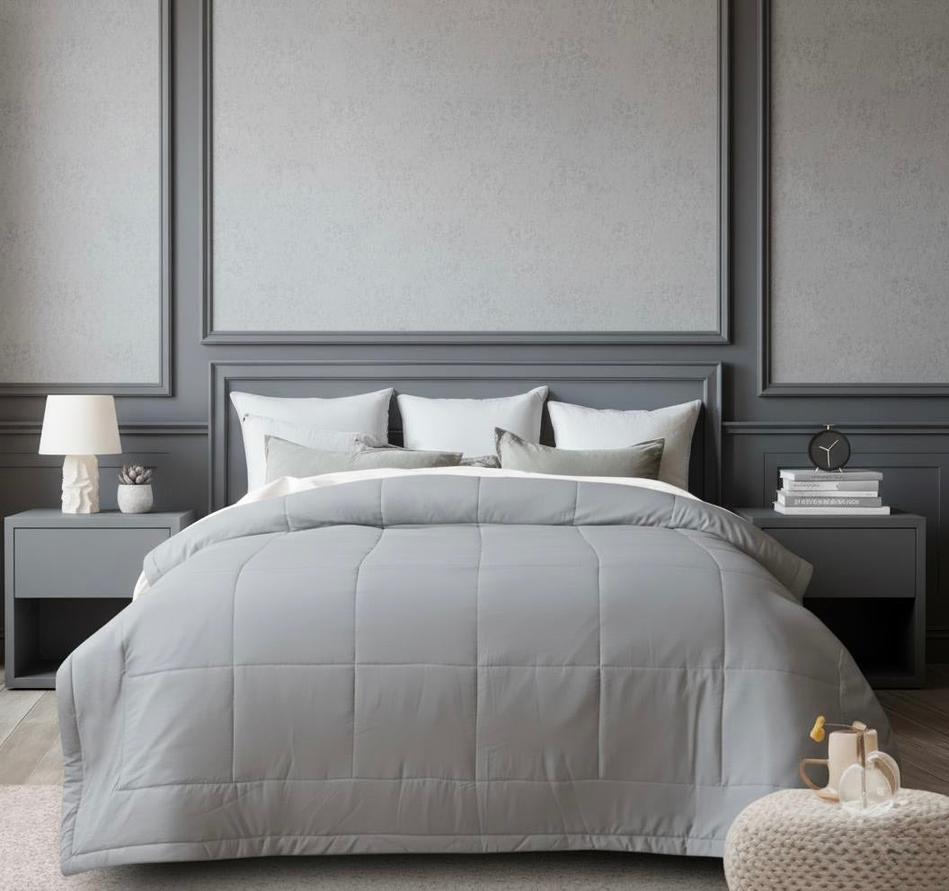- All Season, Soft, cosy and light weight reversible comforter with 300 GSM hollow siliconized polyester filling