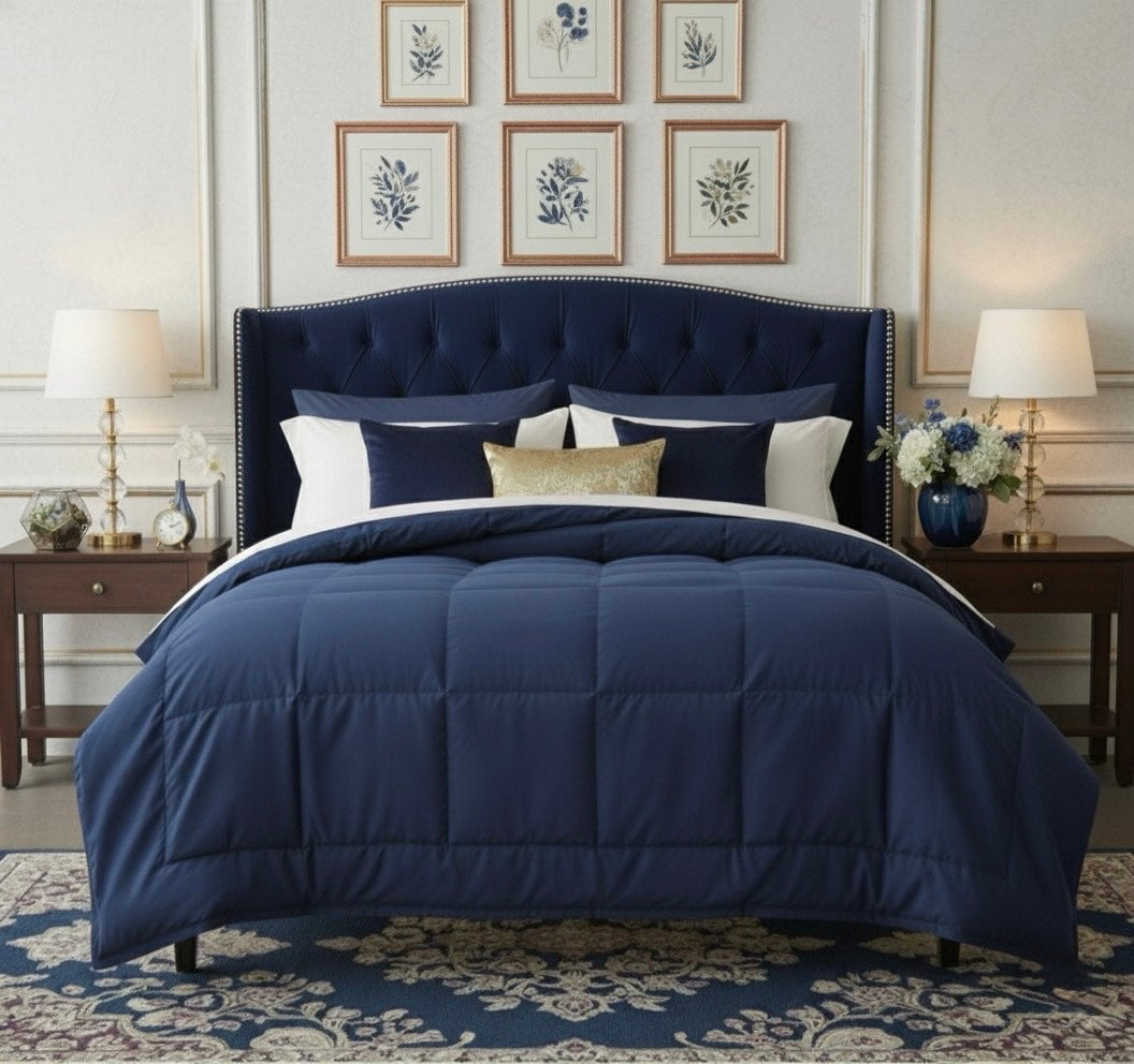 - All Season, Soft, cosy and light weight reversible comforter with 300 GSM hollow siliconized polyester filling
