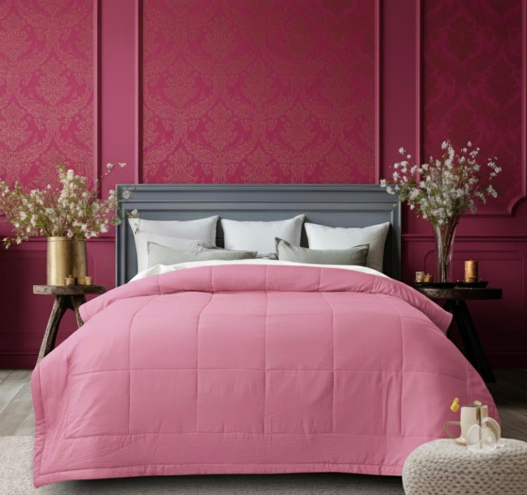 - All Season, Soft, cosy and light weight reversible comforter with 300 GSM hollow siliconized polyester filling